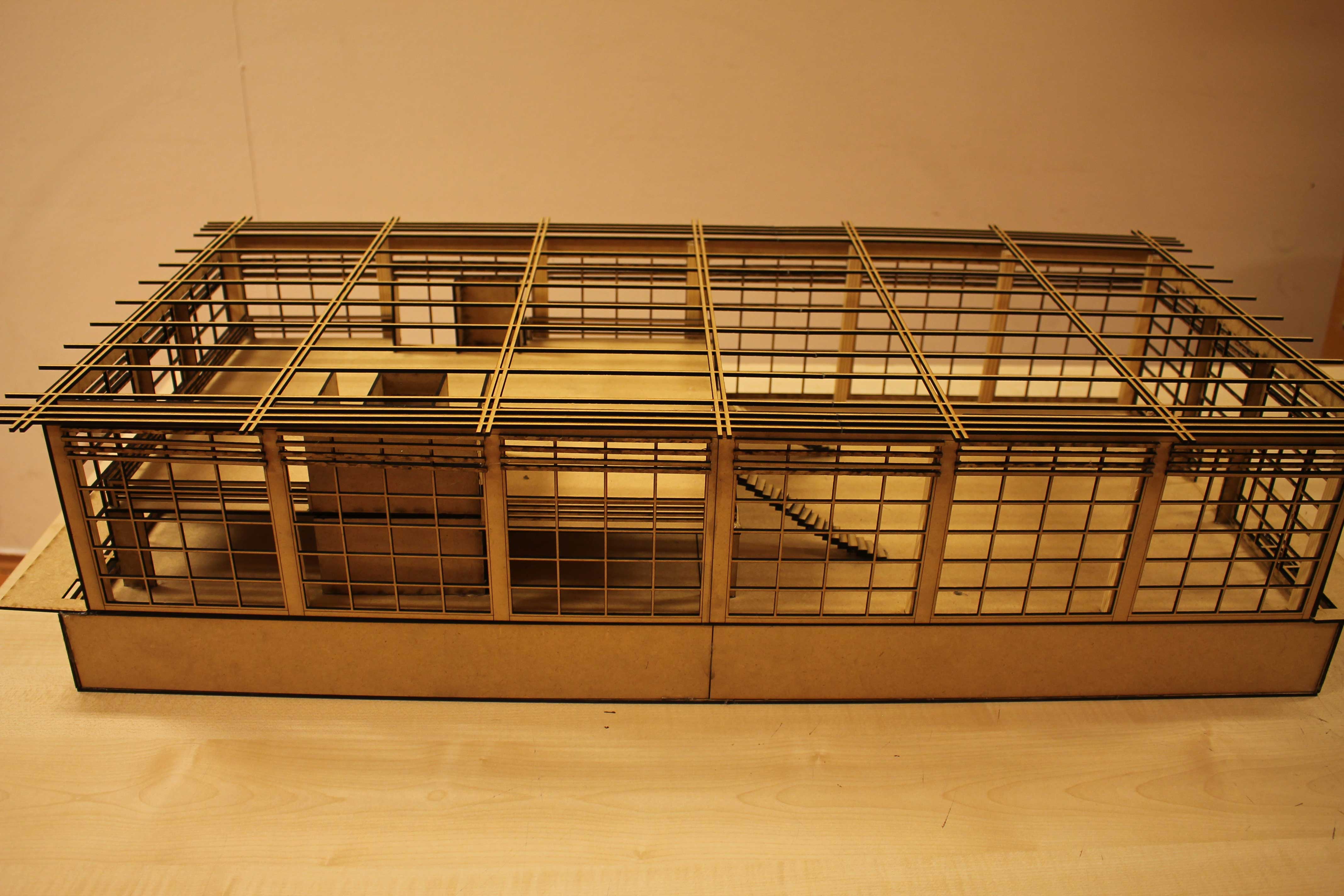 project aimed to model the visitor center on the computer one-to-one, to get the plans and views and render them. Later, the 1/100th model was made entirely of MDF.
